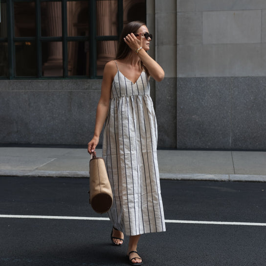 Cove Dress Natural/Navy Stripe