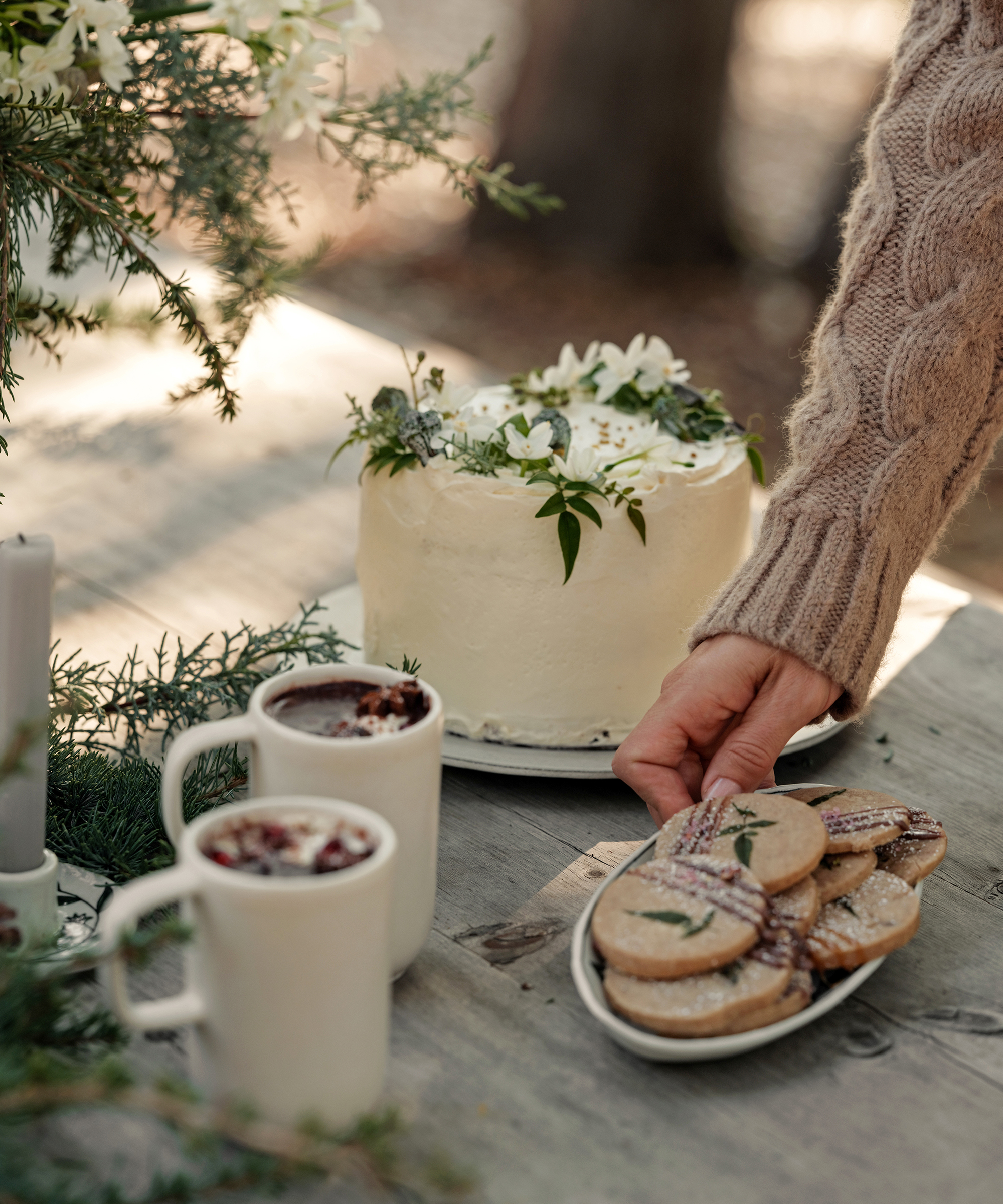 Amidst the hustle of the season, it’s easy to forget that sometimes the sweetest occasions are also the simplest. So, for anyone who may need to hear it, consider this your sign to pare back the festivities in favor of an effortless spread that’s no less impressive. Case in point: Jenni’s recent backyard gathering—a casual afternoon enjoying holiday treats under the trees. For all the details, including full recipes for each of chef Melissa Norton’s three holiday-worthy recipes, keep reading.