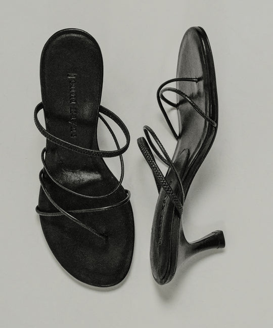 Featuring thin straps and a geometric heel, this heeled edition of a seasonal staple sandal is an ultra-refined essential.