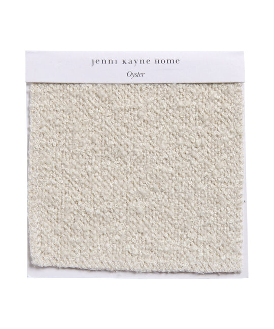 Pieces available in Oyster Mini Boucle: Upholstered Cove Bed, Greenwich Sofa, Greenwich Chair