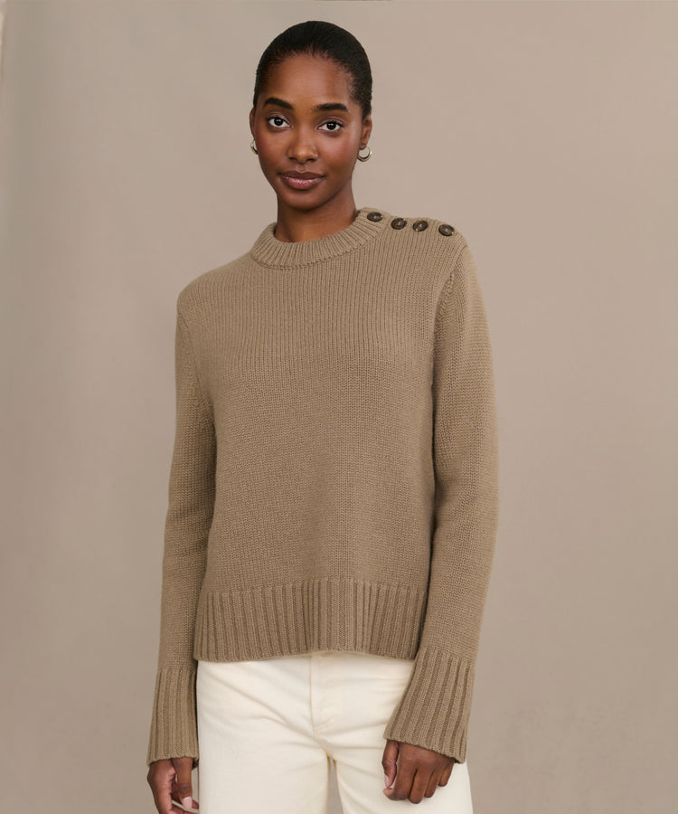 In our most luxurious cashmere weight yet, the Grace Crewneck is an ultra-elevated knit that looks and feels like a complete dream. Featuring shoulder buttons and bold rib trims, it’s a statement staple you’ll wear on repeat.