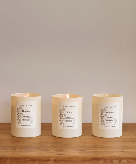 Inspired by the destination that the Jenni Kayne Farmhouse calls home, our Hudson candle is meant to transport you to breezy afternoons and easy evenings in the Hudson Valley. Notes of oregano, heirloom tomato, green musk, cedarwood, and citrus.