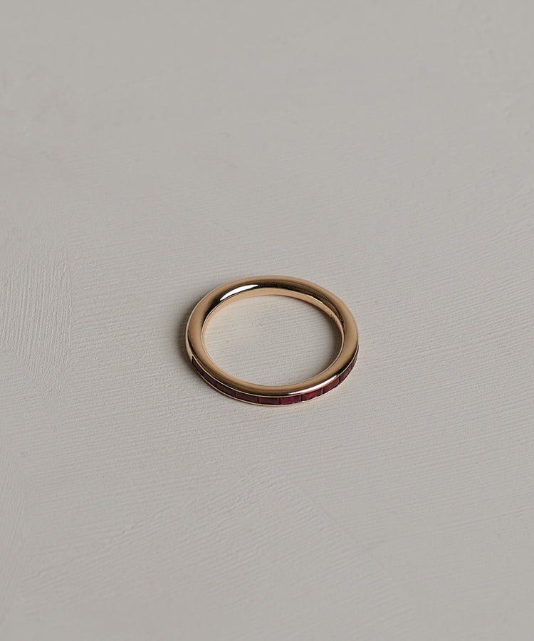 This essential baguette band is designed to bring deep and minimal color to your jewelry collection. Jenni envisions a style moment across our bands—add a touch of subtle color to your ring story by stacking together.