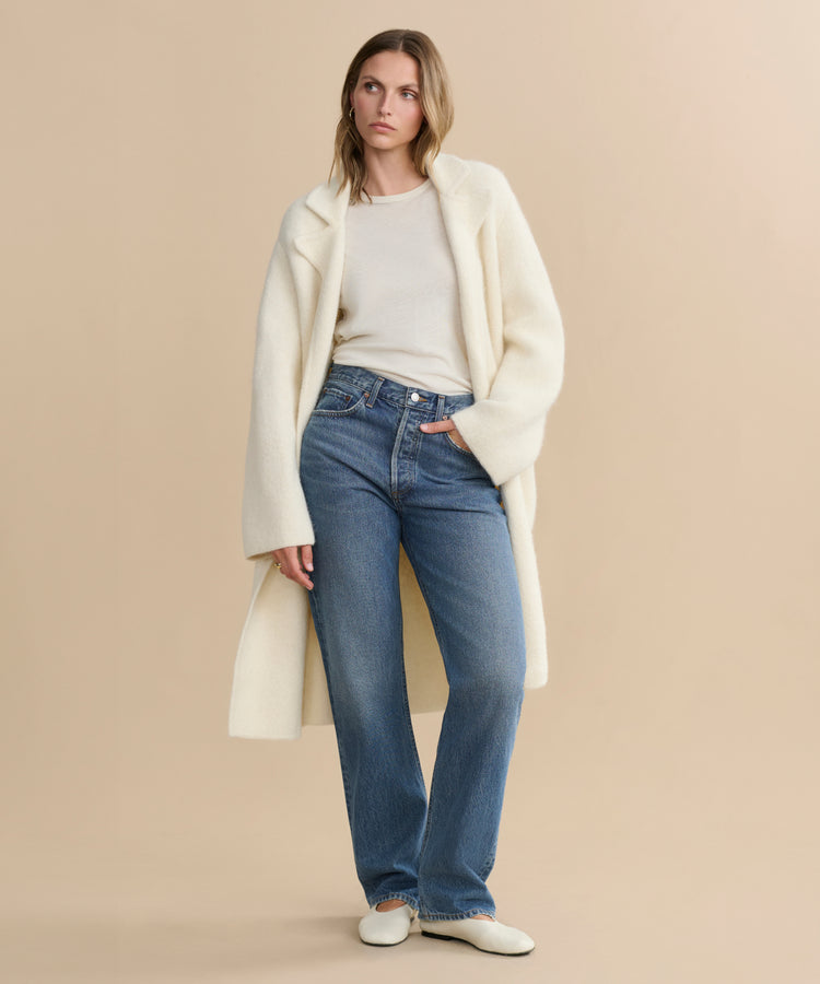 A fresh take on a classic silhouette. The Kelly features a high-rise waist, relaxed top block, and a full-length straight leg for a flattering, vintage-inspired shape. Crafted from rigid, non-stretch regenerative cotton, the heavyweight denim offers structure with a soft hand for lasting comfort. Pair with a tucked-in tee and loafers for a casual polish, or dress it up with a crisp blazer and boots.