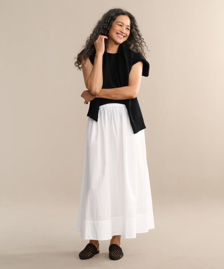 Your new wardrobe staple has arrived. With hem-stitch detail and a full skirt that feels elevated and effortless, the 100% cotton Lauren Skirt is stylized simplicity.