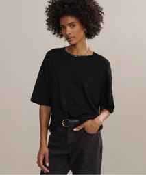 With its oversized fit, elbow-length sleeves, and wide crew neck, this tee is the very definition of an elevated basic. It’s made from 100% merino that drapes beautifully and feels incredibly soft against the skin. Wear it with the Cashmere Cocoon Cardigan and Wool Jones Trouser for a look that easily dresses up or down.