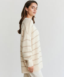 Alpaca Cocoon Crewneck Ivory Stripe