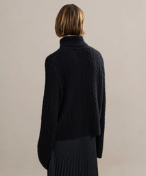 This cable-knit sweater strikes the perfect balance between classic and modern, with a slouchy turtleneck, wide sleeves, and a boxy, hip-length silhouette. Wear it with the Pleated Skirt for an effortlessly put-together outfit.