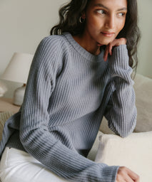 It doesn't get much more classic than this best-selling, never-want-to-take-it-off, 100% cashmere sweater. The boxy body is primed for layering and versatility—slightly tuck it into jeans, don it over a dress, or take one or two sizes up for a look that’s borrowed from the boys.