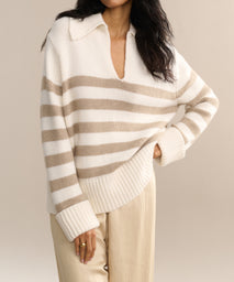 Cashmere Phoebe Polo Ivory/Toast Stripe
