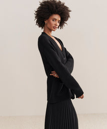 With a plush feel and easy, boyfriend-inspired fit, this 100% cashmere cardigan features a jersey stitch and classic pockets to deliver a borrowed-from-the-boys look. Pair this knit with the Demi Pant or Velvet Stella Dress for a cozy layer, or don it as our version of a California coat.