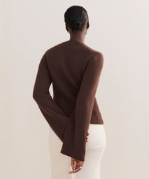 Featuring a structured silhouette that nips in at the waist and a very slight bell sleeve that instantly elevates any ensemble, this iconic cardigan effortlessly holds its own in any wardrobe. The fitted body enables versatile styling: wear it open like a blazer with a t-shirt underneath or buttoned up as a pullover.