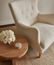 Inspired by one of Jenni’s beloved antiques, this low-profile statement chair is the perfect touch of timeless luxury.