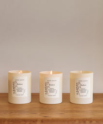 Vessel and scent developed and hand-poured in Los Angeles. Wax is a natural blend of coconut, soy, apricot oil, and paraffin with a lead-free cotton wick.