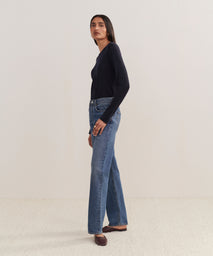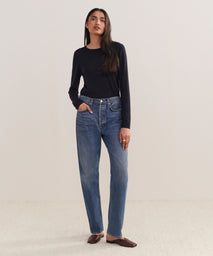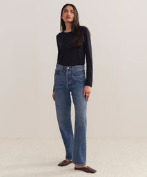 High-rise relaxed, straight with a vintage-inspired extended inseam.