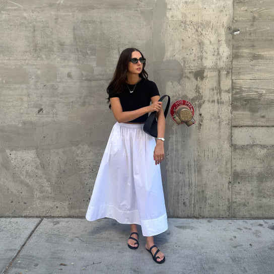 Your new wardrobe staple has arrived. With hem-stitch detail and a full skirt that feels elevated and effortless, the 100% cotton Lauren Skirt is stylized simplicity.