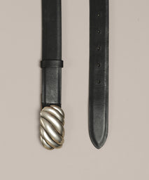 - Leather belt with nubuck lining and metal buckle with antique silver finish.