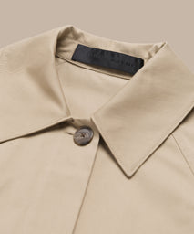Our modern take on the trench coat is finally here—and it was worth the wait. Minimalist details give this piece dimension, like the covered button front and relaxed fit. Always eyeing the details, our favorite moment comes in the form of the single button that is visible at the collar.