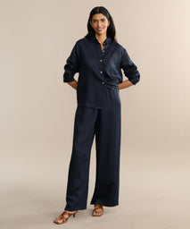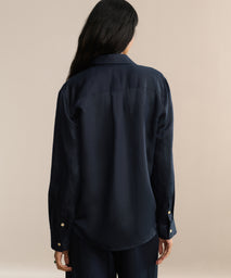 A brand new style in a spring-ready fabrication and weight, the Madeline Shirt features a linen texture with a satin-like finish, bringing you the best combination of seasonal fabrics. Pair this with the Summer Demi Pant for a classic set or don it solo as an everyday basic.