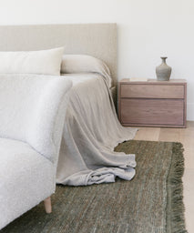 100% jute rug handmade in India under Fair Trade standards. Perfect for grounding a room with elemental texture or layering with a vintage textile.