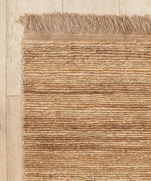 100% jute rug handmade in India under Fair Trade standards. Perfect for grounding a room with elemental texture or layering with a vintage textile.