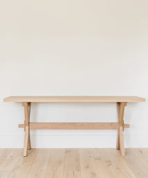 Made from premium solid rustic white oak—heavy and durable for lifelong use. Based on a vintage design, the bottom trestle legs add a subtle but unique design to a simple, modern staple.