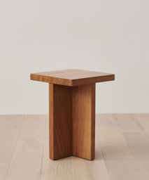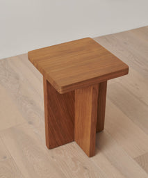 Minimalist side table fashioned from solid teak with a natural finish.