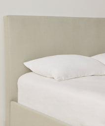 Iconic upholstered headboard featuring luxurious Belgian Libeco linen: 91% linen 9% nylon.