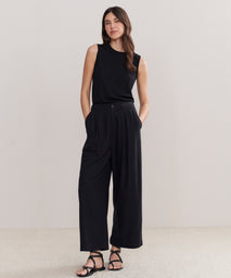 Made from 100% textural raw silk for an effortless look that's equally polished and comfortable. With tailored pleats that seamlessly transition into a wide-leg silhouette, the Relaxed Trouser is the definition of California cool. Pair it with a classic cami or tee or embrace an oversized aesthetic from head-to-toe with your favorite lightweight knit.