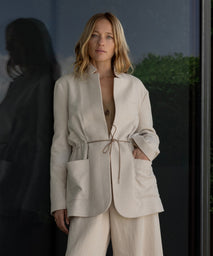 This lightweight wool jacket is the antidote to the transitional days between seasons. With a stand collar and leather cord that cinches at the waist, the Scout Jacket is a wardrobe essential meant to elevate every look.