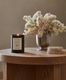 Vessel and scent developed and hand-poured in Los Angeles. Wax is a natural blend of coconut, soy, apricot oil, and paraffin with a lead-free cotton wick.