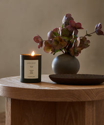 Vessel and scent developed and hand-poured in Los Angeles. Wax is a natural blend of coconut, soy, apricot oil, and paraffin with a lead-free cotton wick.