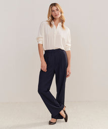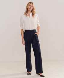 Our take on classic Italian suiting comes to life in the form of a trouser designed to replace every pant in your wardrobe. With elevated tailoring and all-day comfort, this trouser is an all-purpose pant in disguise. Style with a t-shirt and sneakers or a kitten heel and silk shirt—the outfit options are endless.